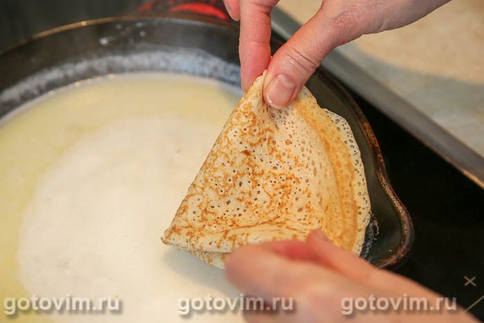 Блины пекла на молоке. Рецепт посмотреть можно здесь. Подойдут любые блинчики, главное, чтобы они были эластичными.