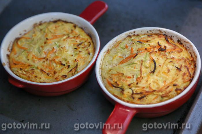 Огнеупорную форму (или порционные формочки как у меня) смазать растительным маслом. Переложить овощную массу в форму и запекать в разогретой до 190С духовке примерно 40 минут.
