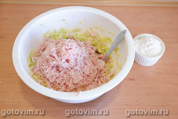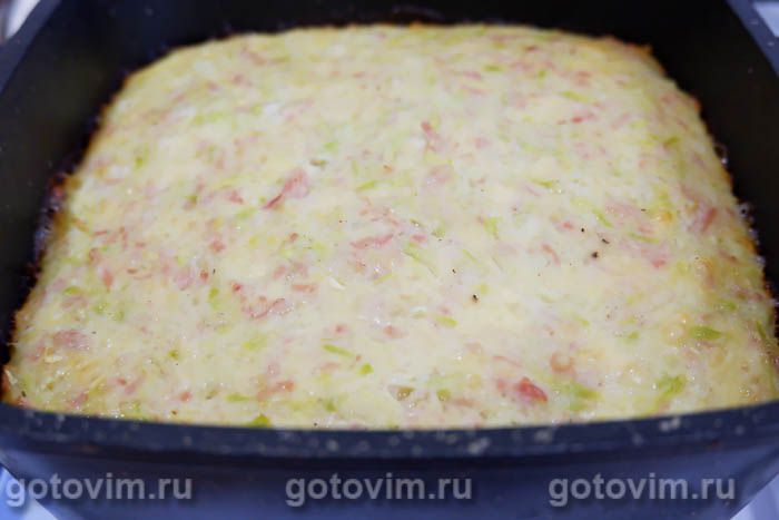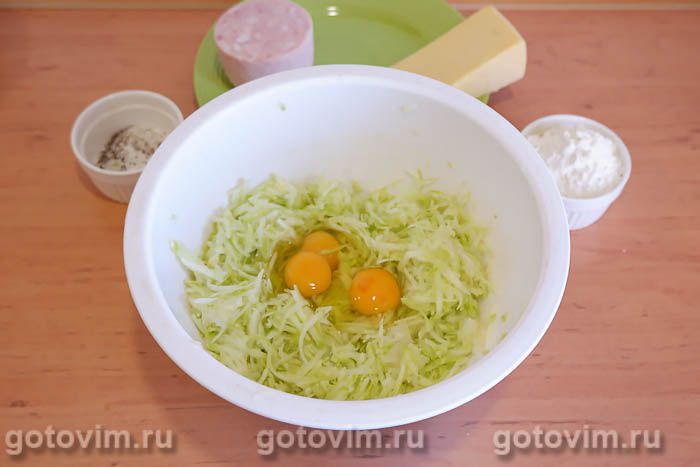 Запеканка из тертых кабачков с колбасой и сыром. Рецепт с фото